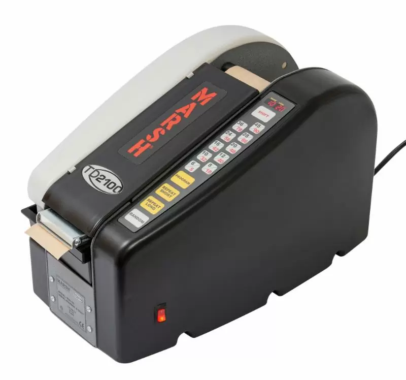 The Electric Taper TD2100 is available in six (6) models, covering short, standard, and long cuts, with the choice of 110V or 220V power. The state-of the-art, electronically driven TD2100 Electric tape dispenser was designed with ease of operation and dependability in mind. All models feature a tactile keypad with repeat keys for short and long tape lengths, making it the ideal choice for sealing same size cartons. It also features Random/Continuous capability built in, along with an LCD display of programmed lengths.